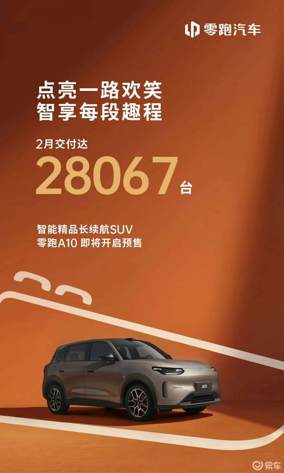 在2月份,零跑、理想、蔚来和小米四家均过万,小米未公布具体数据,所以无法对四家进行排名。