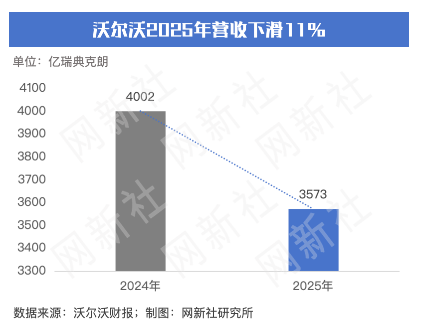 网新社研究所:2025年对沃尔沃汽车而言,既是充满寒意的“挑战年”,也是推倒重来的“重启年”。在关税壁垒、汇率波动和行业内卷的三重挤压下,沃尔沃2025年营收和利润均出现不同程度的下滑。