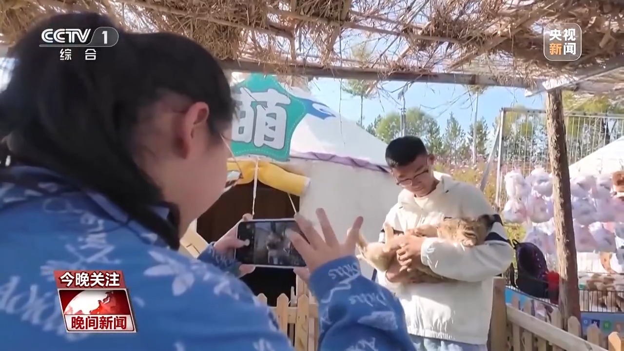 在内蒙古鄂尔多斯东胜区,野生动物园也迎来客流高峰。