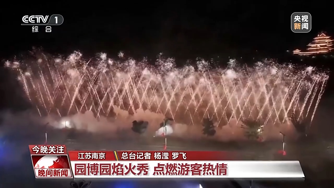 而在位于南京的江苏园博园内,一场大型音乐焰火秀点亮夜空。千架无人机腾空而起,勾勒出“生命之树”“星际之冠”等立体造型,与地面焰火等交相辉映,通过激光成像、移动道具等前沿技术,将“汤山神话”“森林秘境”等篇章串联起来,为观众打造了一场跨越时空的梦幻之旅。